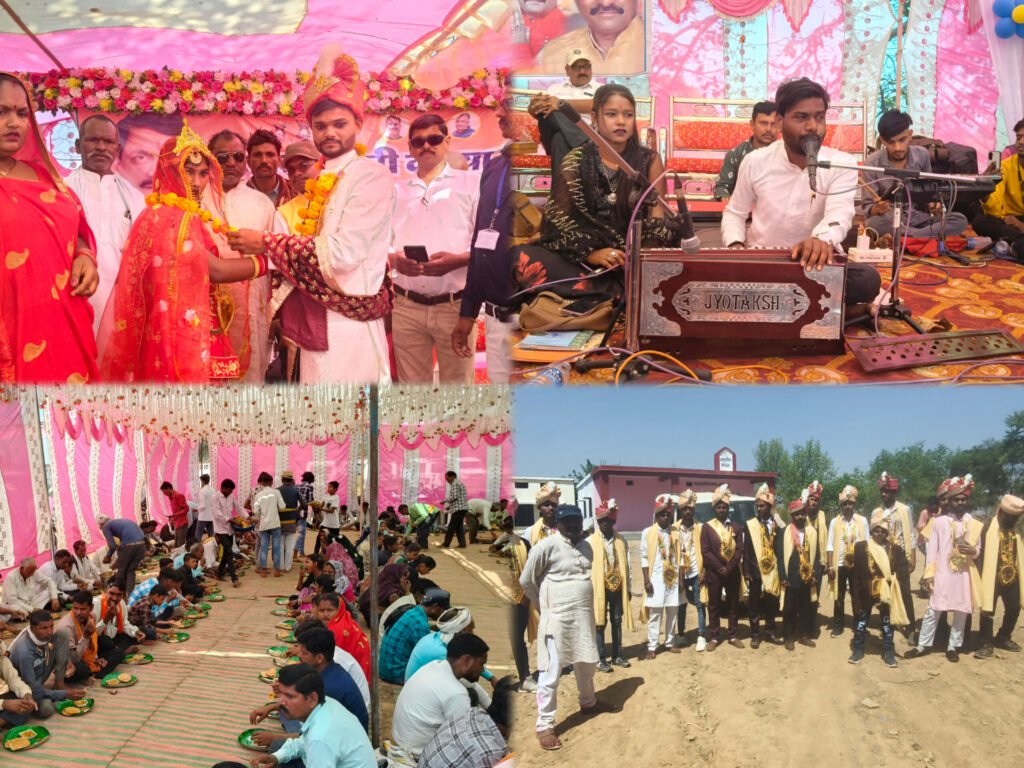 कार्यक्रम के दौरान गोलू एंड पार्टी द्वारा प्रस्तुत सांस्कृतिक कार्यक्रमों ने माहौल को और भी उत्साहपूर्ण बना दिया। लोकगीतों और सांस्कृतिक प्रस्तुतियों का आनंद लेने के लिए बड़ी संख्या में ग्रामीण मौजूद रहे।समारोह स्थल पर वैदिक परंपरा के अनुसार 11 मंडप बनाए गए थे, जहां वरमाला के बाद वैदिक मंत्रोच्चारण के बीच सभी जोड़ों के फेरे संपन्न कराए गए। विवाह के पश्चात पंडाल में विशाल पंगत का आयोजन किया गया, जिसमें 66 नवविवाहित जोड़ों सहित हजारों ग्रामीणों ने सामूहिक रूप से भोजन ग्रहण किया।पूरे कार्यक्रम के दौरान नवदंपतियों और ग्रामीणों के चेहरों पर खुशी साफ झलक रही थी।इस भव्य आयोजन में जनपद पंचायत अध्यक्ष आशीष खरे, सरपंच कमला बाई, बीजेपी मंडल उपाध्यक्ष ध्रुव सिंह, जनपद सीईओ भगवान सिंह, सामाजिक न्याय शाखा के सामाजिक सुरक्षा अधिकारी सिद्धगोपाल अनुरागी सहित जनपद स्तरीय अधिकारी-कर्मचारी, विभिन्न ग्राम पंचायतों के सरपंच-सचिव, स्थानीय संवाददाता और आसपास के सैकड़ों ग्रामीण उपस्थित रहे।बताते चलें कि यह आयोजन जनपद पंचायत अध्यक्ष आशीष खरे के जनपद वार्ड क्षेत्र में आयोजित किया गया, जिसने पूरे क्षेत्र में एक उत्सव जैसा माहौल बना दिया।