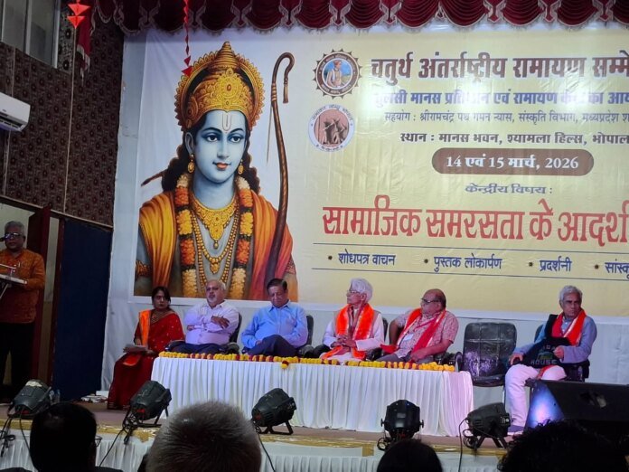 जबलपुर दर्पण । तुलसी मानस प्रतिष्ठान भोपाल, रामायण केंद्र भोपाल,श्रीरामचंद्र पथ गमन, संस्कृति विभाग, मध्य प्रदेश शासन के संयुक्त तत्वाधान में  दिनांक 13 मार्च एवं 14 मार्च 2026 को मानस भवन, भोपाल में आयोजित किए जा रहे दो दिवसीय चतुर्थ अंतरराष्ट्रीय रामायण कॉन्फ्रेंस में रामायण केंद्र जबलपुर इकाई के संयोजक इंजी . संतोष कुमार मिश्र ‘ असाधु’ ने भगवान शिव द्वारा ‘ श्रीरामचरितमानस ग्रंथ के नामकरण ‘ विषय पर  एक अत्यंत रोचक शोध पत्र प्रस्तुत किया गया । इस कॉन्फ्रेंस में देश-विदेश से लगभग 60 शोध पत्र प्राप्त हुए हैं। अपने संबोधन में रामायण केंद्र जबलपुर इकाई के संयोजक एवं प्रसिद्ध धार्मिक चिंतक इंजी. संतोष कुमार मिश्र ‘असाधु ‘ जो कि वर्तमान में मध्य प्रदेश पॉवर मैनेजमेंट कंपनी लिमिटेड जबलपुर में अधीक्षण अभियंता के पद पर कार्यरत हैं,के द्वारा बताया गया कि रामचरित मानस कोई सामान्य किस्सा-कहानी वाला ग्रंथ कदापि नहीं है बल्कि यह एक अत्यंत गूढ़ ब्रह्म विद्या विज्ञान है। उन्होंने बताया कि ईश्वर के द्वारा सृष्टि निर्माण से लेकर सृष्टि के विनाश के मूल में केवल और केवल मन तत्व ही होता है। हमारा मन दुनियां के उस दरवाजे की तरह होता है जिसके एक ओर से प्रवेश करने पर यह जीव या तो दुनियां के भिन्न-भिन्न मायावी झंझावातों में फंस जाता है वहीं दूसरी ओर मन द्वार से बाहर से निकल कर वह दुनियांदारी के चक्र से सदा-सदा के लिए मुक्त हो जाता है। श्री मिश्र ने अपने इस शोध पत्र में रामचरितमानस के प्रत्येक कांड में भिन्न-भिन्न पात्रों के माध्यम से मन तत्व की व्याख्या की गई। इसके अतिरिक्त रामचरित मानस के नामकरण के सम्बन्ध में और भी कई गूढ़ विषयों का रहस्योद्घाटन किया गया। श्री मिश्र के इस अनूठे शोध पत्र की भूरि-भूरि प्रशंसा करते हुए उन्हें आयोजकों द्वारा भी सम्मानित किया गया है।
